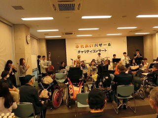 | 肢体不自由の人たちと触れ合う機会は日常的には少ないと思います。しかし、誰もが自分らしく生きていたいという願いは同じです。今回のイベントでも、青年グループの皆さんにたくさん参加していただきました。その場所に行かないと感じられないものがあります。人との触れ合いは、生きることへの意欲につながります。これからも、この行事を通して、障害があろうとなかろうと「人と人がつながること」の大切さを感じられる場として続けていきたいと考えています。 末尾になりますが、兵庫県肢体不自由児者協会の「ふれあいバザー&チャリティコンサート」に貴重な品々をご提供いただき、ご支援いただきました企業・商店・個人の皆様、各分野で応援を頂きました皆様には関係者一同深く感謝申し上げます。 |