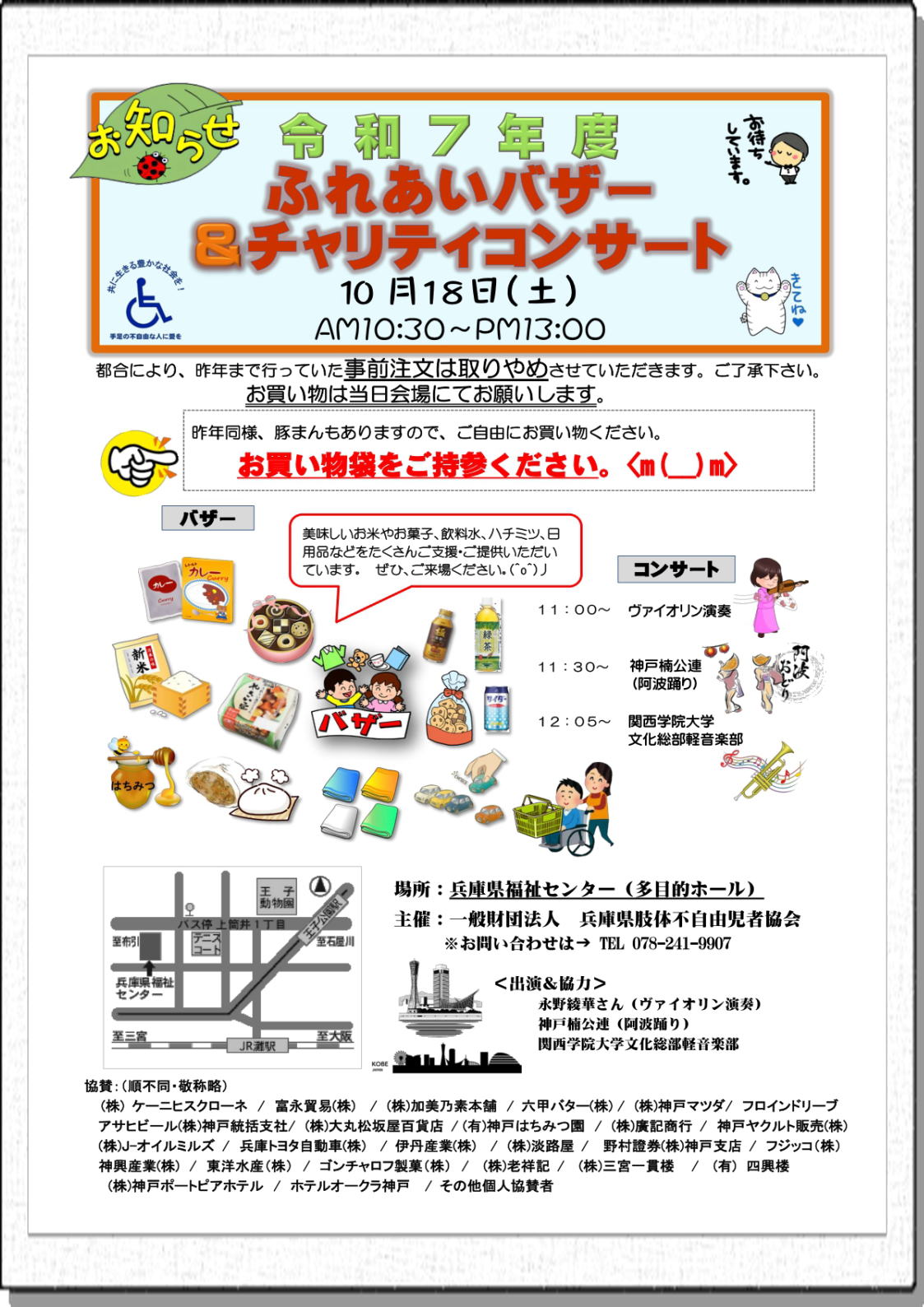 実施日:令和7年10月18日(土)10:30~13:00 場 所:兵庫県福祉センター1階 多目的ホール<101、102、103> |