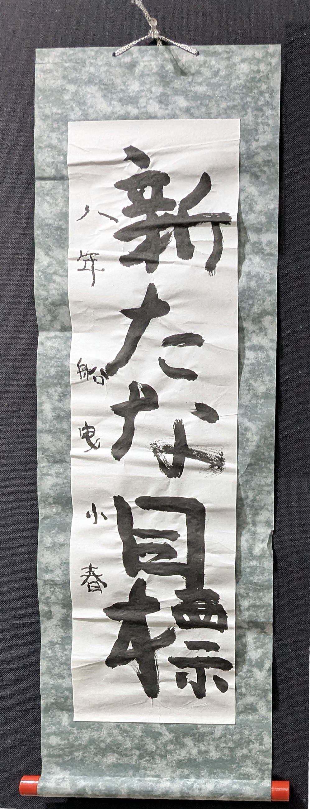 書き初めとして挑戦しました。中学校を卒業した後の進路を決めていく年なので新しく挑戦したいことも多く、「新たな目標」をしっかり立て、実現できるようがんばりたいです。