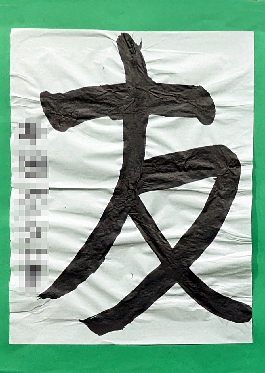 友だちをたくさんつくりたいので「友」という字をかきました。とくに太く大きな字でがんばりました。