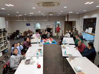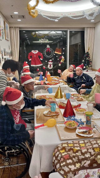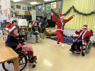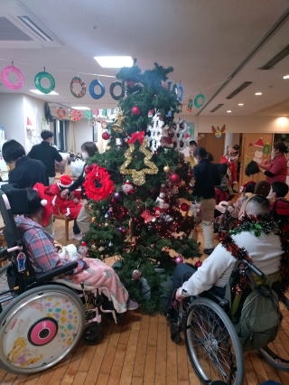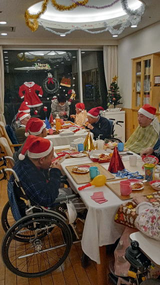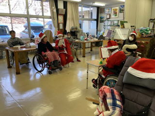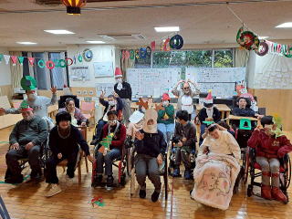 ・施設利用者とボランティア、スタッフと一緒に昼食作りなどのプログラム、ケーキやジュース等の飲食、プレゼント交換を行い互いの親睦を図るため。 利用者、保護者、ボランティア、職員の皆様の交流 ・音楽療法 ・調理実習 ・お菓子作り ・ビンゴゲーム ・プレゼント交換 ![]() ・利用者様とゲームなどをして、クリスマス会を祝う 施設内でチキンやクリスマスケーキを食べたり、ビンゴゲームやクリスマスに因んだゲームを楽しんでもらい、景品を用意する ![]() ![]() ・利用者・スタッフの親睦を図り、1年の思い出をクリスマス会で語り、楽しい時間を過ごしたい ![]() ![]() ・施設利用者とボランティア、スタッフと一緒に昼食作りなどのプログラム、ケーキやジュース等の飲食、プレゼント交換を行い互いの親睦を図るため。 AM 調理実習(昼食用のクリームシチューの調理(包丁を使用して人参、玉ねぎ、ジャガイモを切る、しめじを手でちぎる等) 昼食 シチュー、パン、から揚げ、ポテトサラダ(園芸療法ラディッシュ入り)を食べる PM ビンゴゲームでプレゼントを選ぶ お茶会(カッププリン、ジュース等) ![]() 前半は、「しおさい」の皆さんにブラックシアターを見せていただきました。ブラックライトで光るペープサートを音楽に合わせてう動かされたブラックシアターはとてもきれいで、音楽とともに楽しみました。後半は、ケーキやお菓子をいただきながら、近況報告等で話に花が咲きました。 ・音楽発表会(チィイムツリー演奏、ダンス披露) |